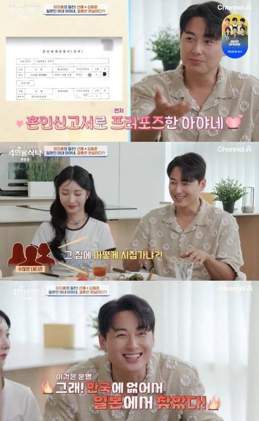 이날 이지훈은 프로포즈에 대해 “300일 되는 날 아내가 편지를 줬다. 뒷장을 보니 혼인신고서더라. 아내가 우리 가족을 대하는 모습에서 알았다. 나이도 어린데 가족과 잘 지내는 모습을 보고 잘 어울릴 수 있겠다 싶었다"고 밝혔다.