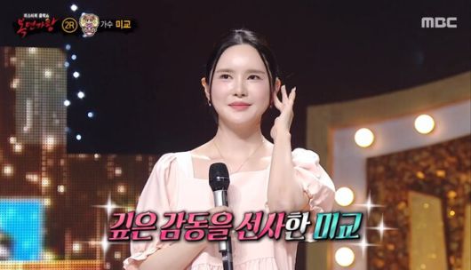 [스타데일리뉴스=천설화 기자] 가수 미교가 MBC 예능 프로그램 '복면가왕'에서 복면 가수 '뾰로통'으로 출연해 실력을 입증하며, 정체 공개와 함께 컴백 소식을 알렸다.