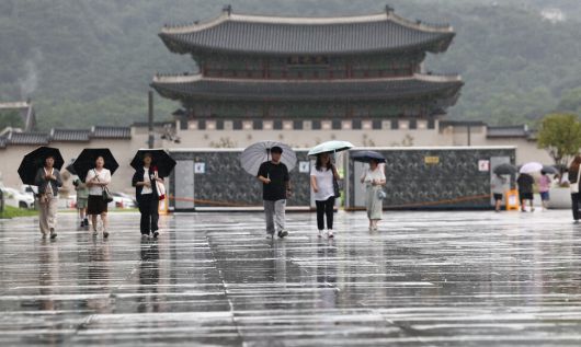 비가 내린 14일 서울 종로구 광화문광장에서 시민들이 걷고 있다. 연합뉴스. |