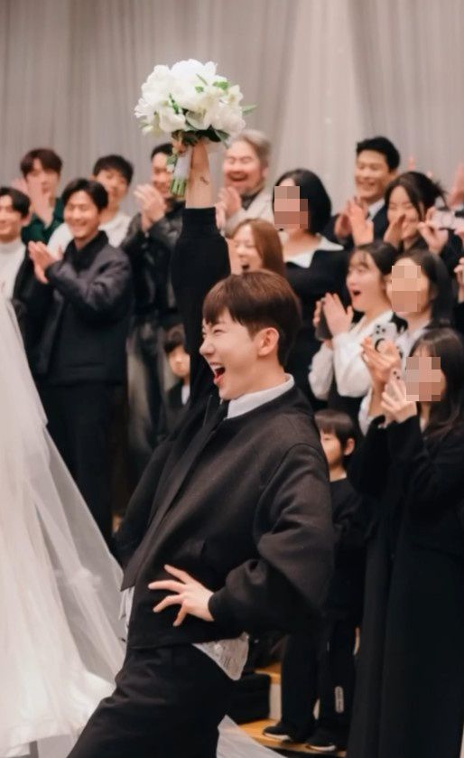 조권은 최근 자신의 인스타그램에 지인들의 결혼식에서 신부의 부케를 받는 모습을 공유했다.