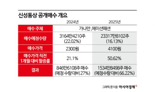 이 때문에 개인투자자들은 최근 수년간 정부의 강화된 밸류업 기조와 맞물려 신성통상이 배당을 확대해야 한다고 목소리를 높여왔다. 하지만 신성통상은 지난해 1차 공개매수를 통한 자진 상폐로 대응한 데 이어 올해 또 다시 공개매수를 통한 추가 지분 확보에 나선 것이다.