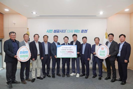 이번 기부는 소양강쌀 소비 촉진 캠페인의 일환으로 전달식에는 춘천농협, 강동농협, 서춘천농협, 축협 등 지역 농축협 조합장과 농협중앙회 춘천시지부 관계자 등 15명이 함께했다.