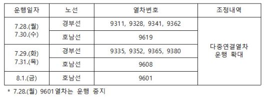 여름 휴가철 SRT 다중연결열차. [자료=에스알(SR)]