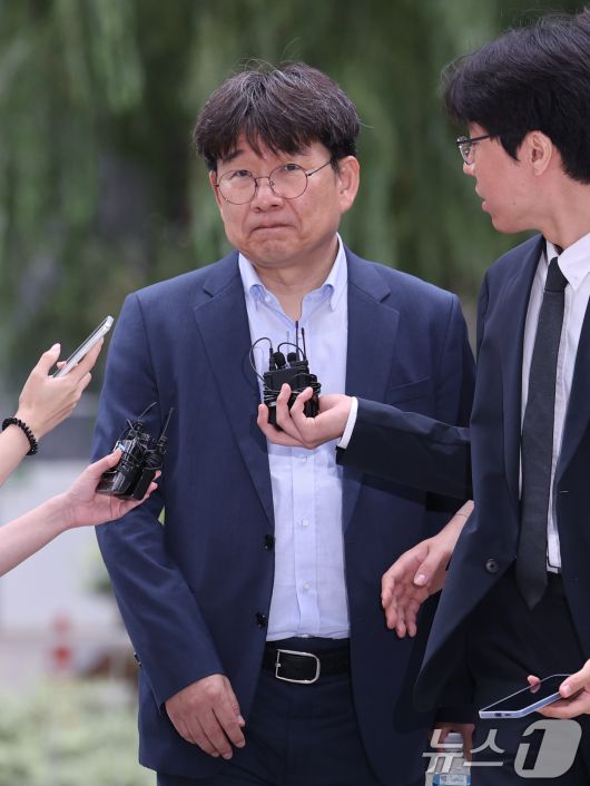 (서울=뉴스1) 박지혜 기자 = 이상화 동해종합기술공사 부사장이 15일 서울 종로구 김건희 여사에 관한 의혹들을 수사하는 민중기 특별검사팀 사무실로 출석하며 취재진 질문을 받고 있다. 2025.7.15/뉴스1pjh2580@news1.krCopyright ⓒ 뉴스1. All rights reserved. 무단 전재 및 재배포, AI학습 이용 금지.