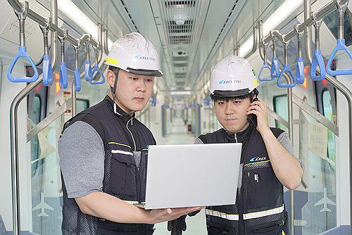 (서울=연합뉴스) LG유플러스는 공항철도 검암사옥과 용유 차량기지에 국내 철도운영기관 중 최초로 5G 특화망 '이음 5G'을 상용화했다고 15일 밝혔다. 직원들이 용유 차량기지에서 5G 특화망 점검하고 있다. 2025.7.15 [LG유플러스 제공. 재판매 및 DB 금지]