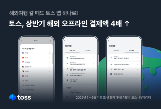 토스 관계자는 "올 상반기 해외 결제 거래액이 큰 폭으로 증가한 것은 여행에 필요한 여러 과정을 하나의 앱 안에서 자연스럽게 연결한 결과"라며 "앞으로도 더 많은 사용자가 일상처럼 토스를 활용해 해외여행을 준비하고 즐길 수 있도록 서비스 경험을 계속 확장해 나갈 것"이라고 말했다.
