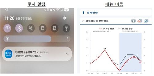 한은 관계자는 “푸시 알림과 같은 앱 전용 기능을 추가했다”며 “경제전망, 금융안정, 국민계정 등 주요 보고서·통계가 공개되면 해당 스냅샷 차트로 바로 이동할 수 있는 푸시 알림을 발송한다”고 말했다.