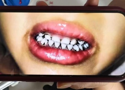납중독으로 치아 일부가 검게 변한 피해 유치원생. /중국 지무뉴스 보도화면 캡처 |