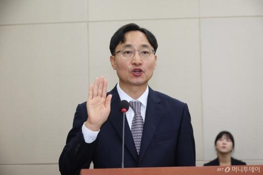 임광현 국세청장 후보자가 15일 서울 여의도 국회에서 열린 기획재정위원회의 국세청장 인사청문회에서 선서를 하고 있다./사진=뉴시스 제공. |
