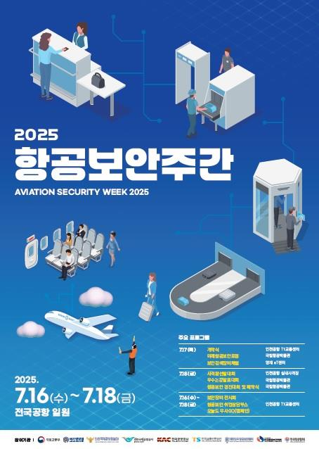국토교통부는 국가정보원, 경찰청과 함께 전국 15개 공항에서 16일부터 18일까지 '2025 항공보안주간'을 처음으로 개최한다고 15일 밝혔다. 올해 주제는 '국민과 함께 만드는 항공보안'이다. 정부와 공항공사, 항공사, 승객이 함께 참여해 보안문화 정착과 항공보안 종사자의 자긍심 제고를 목표로 다양한 행사를 진행한다.