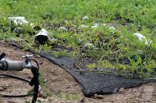 제주 제주시 애월읍 신엄리 소재 밭에 있는 수박들이 신문지로 감싸져있다..2025.7.9/뉴스1 ⓒ News1 홍수영 기자 |