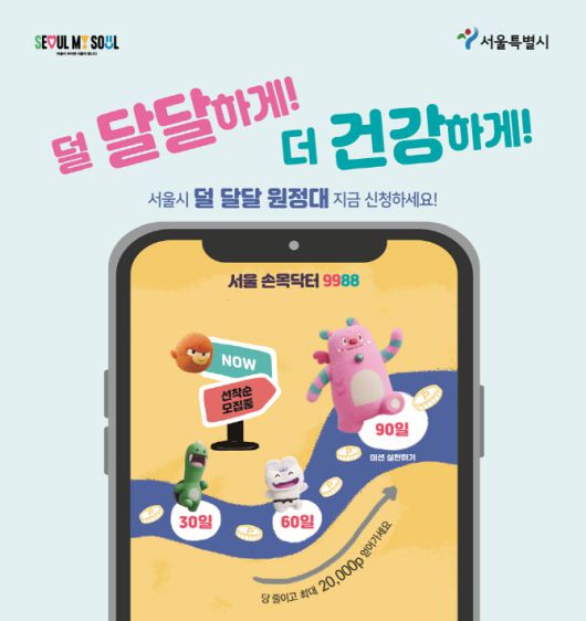 서울시 스마트 건강관리 플랫폼인 ‘손목닥터 9988’에 가입된 부모 또는 조부모 계정에 어린이(서울 소재 초등 4~6학년) 정보를 등록하면 참여할 수 있으며, 90일을 매일 접속해 총 3단계로 구성된 일일 미션을 수행하면 포인트를 쌓을 수 있다.