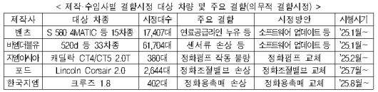 51차종 8만2537대…응축수로 인한 센서류 손상 등