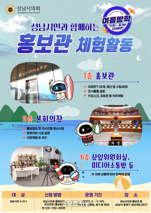 〔스포츠서울│성남=좌승훈기자〕성남시의회는 여름방학을 맞아 지역 청소년을 대상으로 지방의회의 기능과 역할을 이해하고 직접 체험할 수 있는 의회 체험활동 프로그램을 운영한다고 15일 밝혔다.