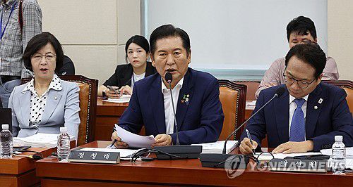 (서울=연합뉴스) 김주형 기자 = 더불어민주당 정청래 의원이 15일 국회 국방위원회에서 열린 안규백 국방부 장관 후보자 인사청문회에서 의사진행 발언을 하고 있다. 2025.7.15