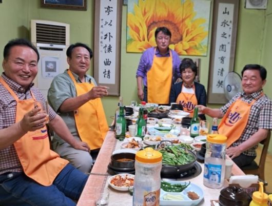 사진 속에는 김현기 의장과 이완복, 정태훈 의원이 술잔을 든 채 카메라를 응시하는 모습이 담겼으며, 김영환 지사는 남연심 의원 뒤에 서서 손을 올린 채 사진을 찍었다. 테이블 위에는 염소탕과 함께 소주 3병, 맥주 2병이 놓여 있었다.
