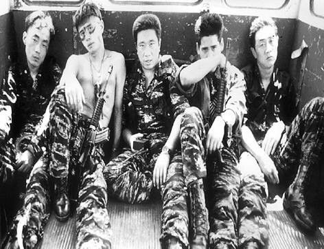 1997년 개봉 영화인 ‘마지막 방위’ 장면. 영화는 필리핀 오지에서 한국 노동자들이 게릴라들에게 납치되자 한국군은 특수부대 요원 5명을 보내 인질을 구출하기로 하는데 요원선발 과정에서 해커의 장난으로 단기사병(방위) 5명이 차출된다는 내용이다. 한겨레 자료사진 |