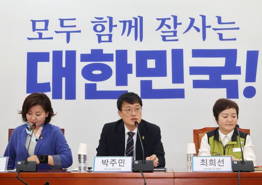 15일 국회에서 열린 더불어민주당-전국보건의료노조 간담회에서 박주민 국회 보건복지위원회 위원장(가운데)이 인사말을 하고 있다. 연합뉴스 |