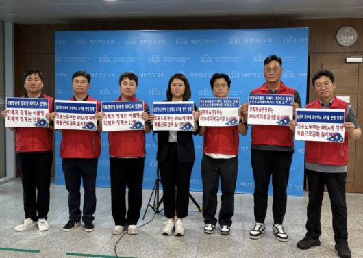 KPGA 노조는 15일 서울 영등포구 국회 소통관에서 국회 문화체육관광위원회 소속 진보당 손솔 의원과 함께 기자 회견을 열고 KPGA에서 벌어진 직장 내 가혹 행위와 피해 직원들에게 내려진 보복성 징계 사태에 대한 입장을 발표했다.