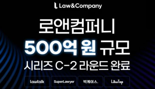 리걸테크 기업 로앤컴퍼니는 최근 500억원 규모 시리즈 C-2 투자 라운드를 완료했다고 15일 밝혔다. 최종 투자액은 신주와 구주를 포함해 총 500억원 규모로 IMM인베스트먼트, 대성창업투자, 신한벤처투자, KDB산업은행 등이 신규 투자자로 참여했다.