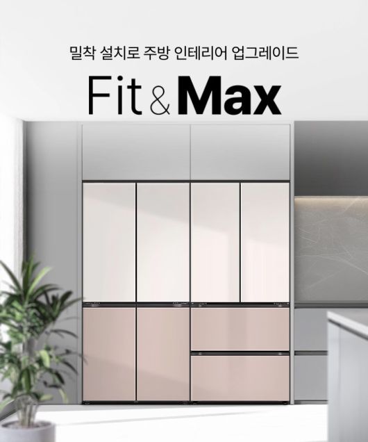핏앤맥스는 '제로 클리어런스 힌지' 기술을 적용한 제품으로, 냉장고 문을 여닫는 부품을 본체 안쪽으로 회전하도록 설계해, 벽면과 단 4㎜만 띄워도 문을 자유롭게 열 수 있다. 별도 시공 없이도 빌트인처럼 깔끔한 주방 연출이 가능하다.