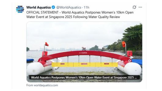 2025 싱가포르 세계수영선수권대회 오픈워터 수영 첫날 경기가 수질 문제로 하루 미뤄졌습니다.