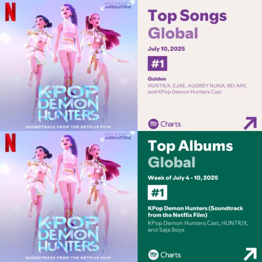 해외에서는 이미 지난 주 수록곡 '골든'이 스포티파이 글로벌 데일리 톱 송 차트 1위에 올랐으며, 주간 앨범 차트에서도 1위를 차지했다. '유어 아이돌' 또한 미국 스포티파이 데일리 톱 송 차트 1위에 올랐고, '골든'과 '하우 잇츠 던(How It's Done)'은 각각 2위와 3위를 차지해 차트 톱3를 OST 앨범이 모두 석권하는 진기록을 세웠다.