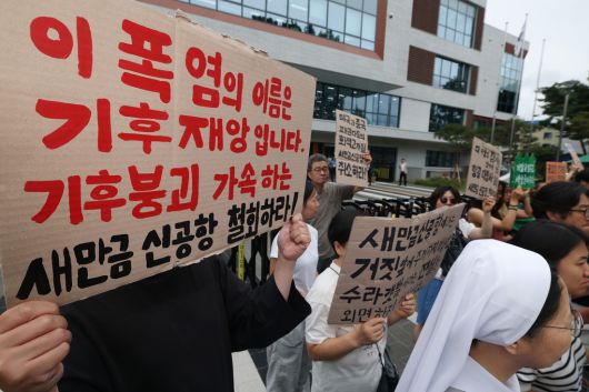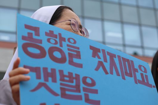 환경단체 활동가들이 15일 기자회견을 열고 새만금신공항 백지화를 요구했다.