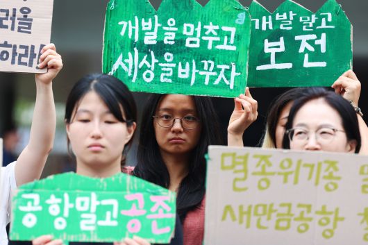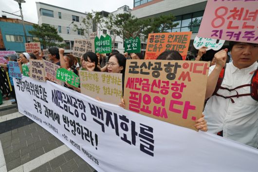 새만금신공항백지화 공동행동 활동가들은 이날 서울 종로구 국정기획위원회 앞에서 직접 만든 손팻말을 들고 “대통령이 공약한 기후 위기 대응과 생물 다양성 복원을 위해 새만금신공항 계획을 백지화하라”고 했다. 이들은 “새만금신공항 계획 부지인 수라 갯벌은 수백 종의 다양한 동식물들이 살아가는 생태지역으로 지켜져야 한다”고 했다. 또한 “대규모 조류서식지로서 항공기와 조류가 충돌할 수 있는 위험도가 높다는 점도 공항 사업 백지화의 충분한 이유가 된다”고 했다.