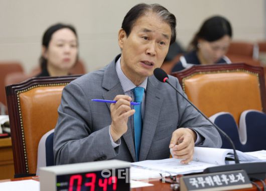 [이데일리 노진환 기자] 권오을 국가보훈부 장관 후보자가 15일 서울 여의도 국회 정무위원회 전체회의에서 열린 인사청문회에 출석, 질의에 답변하고 있다.