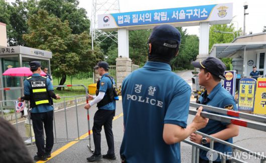 [의왕=뉴스핌] 김학선 기자 = 윤석열 전 대통령이 재구속된 이후 조은석 특별검사팀의 출석 요구에 잇달아 불응한 가운데 15일 윤 전 대통령이 수감된 경기도 의왕시 서울구치소 앞에서 경찰이 분주히 움직이고 있다. 특검은 이날 윤 전 대통령에 대해 구속기간 연장 없이 바로 기소하는 방안도 검토하고 있다고 밝혔다. 2025.07.15 yooksa@newspim.com