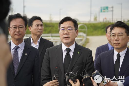 [서울=뉴스핌] 박찬제 기자 = 더불어민주당 8·2 전당대회 당대표 선거에 출마한 박찬대 후보가 지난 14일 오송 지하차도 참사 현장인 충북 청주시 궁평2지하차도를 둘러본 뒤 취재진과 이야기 하고 있다. [사진=박찬대 캠프 제공] 2025.07.15 pcjay@newspim.com |