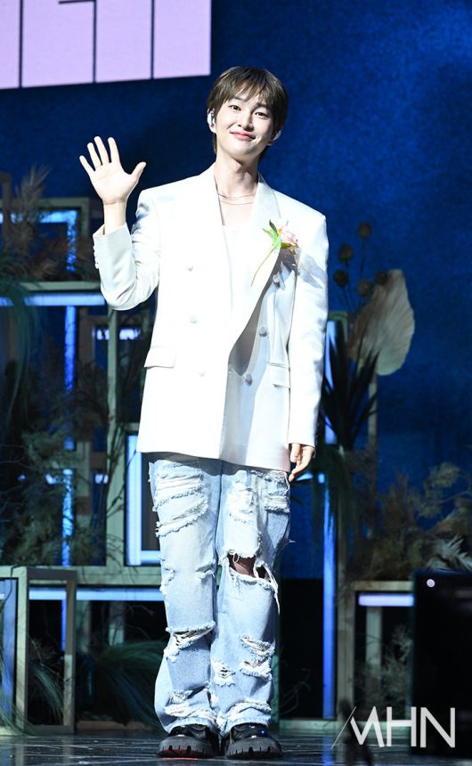 (MHN 이현지 기자) 그룹 샤이니 멤버 온유(ONEW)가 15일 오후 서울 영등포구 명화라이브홀에서 정규 2집 'PERCENT'(퍼센트) 발매 기념 쇼케이스에서 포토타임을 갖고 있다.