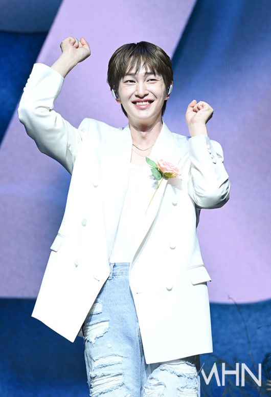 (MHN 이현지 기자) 그룹 샤이니 멤버 온유(ONEW)가 15일 오후 서울 영등포구 명화라이브홀에서 정규 2집 'PERCENT'(퍼센트) 발매 기념 쇼케이스에서 포토타임을 갖고 있다.