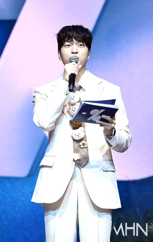 (MHN 이현지 기자) 방송인 유재필이 15일 오후 서울 영등포구 명화라이브홀에서 정규 2집 'PERCENT'(퍼센트) 발매 기념 쇼케이스에서 진행을 하고 있다.