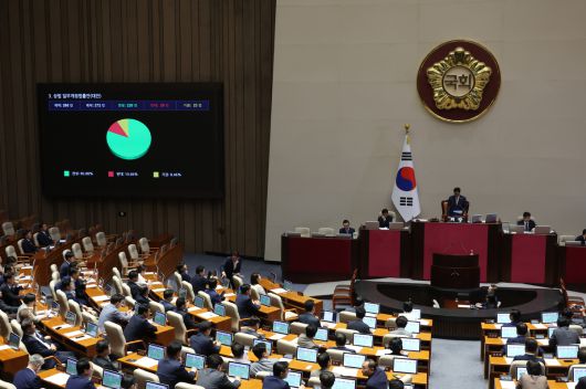지난 3일 서울 여의도 국회에서 열린 제426회 국회(임시회) 제4차 본회의에서 상법 일부개정법률안이 재석 272인, 찬성 220인, 반대 29인, 기권 23인으로 가결되고 있다. 뉴시스 |