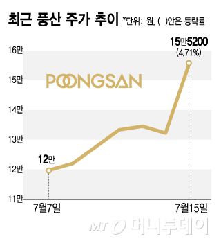 최근 풍산 주가 추이./그래픽=김지영 디자인 기자 |