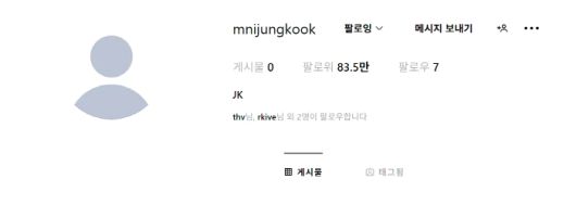 그리고 약 1년 뒤, 정국은 'JK'라는 이니셜을 내건 개인 계정을 새로 개설했다. 현재 해당 계정은 방탄소년단 멤버 6명과 BTS 공식 계정만을 팔로우 중이며, 개설 직후 팔로워 수는 80만 명을 넘어서며 초고속으로 증가하고 있다.