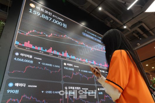 [이데일리 이영훈 기자] 비트코인 가격이 원화 거래소에서 1억6천500만원에 육박하는 등 사상 최고가를 경신한지 하루지나 하락세를 보인 15일 서울 강남구 빗썸라운지 전광판에 코인 현황판이 나오고 있다.