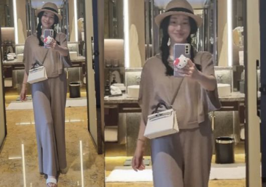 이때 러블리한 스타일링에 눈길이 집중됐다. 이날 이정현은 편안한 스타일의 의상을 착용, 여기에 명품 H사 가방을 매치해 편안함 속 럭셔리함도 놓치지 않았다. 또한 화장기 없는 민낯으로 동안 미모를 자랑, 여기에 양갈래 땋은 머리에 밀집 모자를 착용해 러블리한 매력도 뽐냈다.