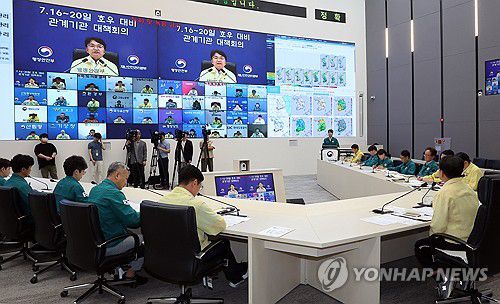 (세종=연합뉴스) 배재만 기자 = 김광용 재난안전관리본부장이 15일 정부세종청사 중앙재난안전상황실에서 열린 호우 대비 관계기관 대책회의를 주재하고 있다. 2025.7.15