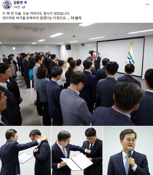 끝으로 김 지사는 "참사 희생자의 명복을 빈다. 생존자분과 유가족 여러분의 여전히 힘든 마음을 위로한다"고 전했다.