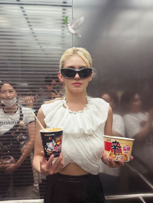 그런가하면, 컵라면을 손에 든 채 엘리베이터 안에서 밝은 미소로 친근함을 전하는 모습도 보여줬다.