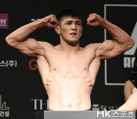 이리스켈디 두이셰예프가 2025년 6월 스위스그랜드호텔 서울컨벤션센터 로드FC73 2부 제3경기 공개 계체 촬영을 하고 있다. 사진(서울 홍은동)=천정환 기자 |