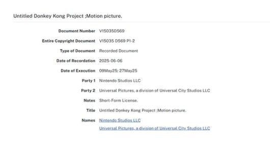 최근 닌텐도 스튜디오와 유니버셜 픽처스가 미국 저작권 사무소에 동키콩을 등록한 게 뒤늦게 알려졌다. 영화 제목은 아직 정해지지 않았다.