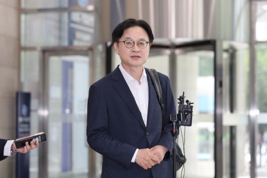 산업통상자원부 장관 후보자로 지명된 김정관 두산에너빌리티 사장이 6월 30일 서울 강남구 한국기술센터에 마련된 인사청문회 준비사무실로 첫 출근을 하며 취재진의 질문에 답하고 있다. |