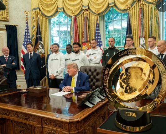 영국 매체 '가디언'은 14일(이하 한국시간) 보도를 통해 "도널드 트럼프 미국 대통령은 사무실 한가운데 놓인 클럽 월드컵 트로피가 그곳에 계속 남아있을 것이며, 국제축구연맹(FIFA)이 클럽 월드컵 결승전에서 첼시에게 준 것은 복제품이다"라고 보도했다.