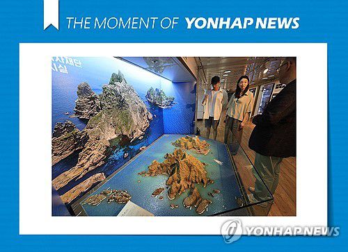 (서울=연합뉴스) 최재구 기자 = 15일 서울 광화문 동북아역사재단 독도체험관에서 시민들이 관계자의 설명을 들으며 독도모형을 살펴보고 있다. 일본 정부는 "독도는 일본 고유의 영토"라는 주장을 펴온 방위백서의 어린이판 약 6천100권을 전국 초등학교에 배포했다. 2025.7.15 [THE MOMENT OF YONHAPNEWS]