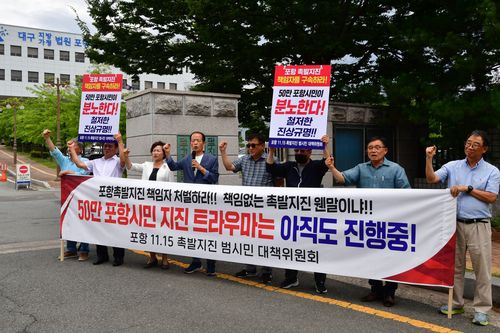 (포항=연합뉴스) 손대성 기자 = 2017년과 2018년에 발생한 경북 포항지진을 촉발한 의혹을 받는 지열발전사업 관계자에 대한 형사재판이 시작됐다.