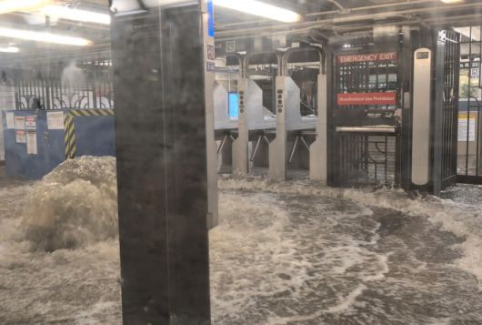 미국 뉴욕시 일대에 쏟아진 갑작스러운 폭우로 여러 곳의 지하철역이 말 그대로 물바다가 됐다. 뉴욕타임스 등 현지 언론은 14일 밤(현지시간) 폭우가 뉴욕주와 뉴저지주, 코네티컷주 등 3개 주에 쏟아지면서 곳곳이 물에 잠기고 뉴욕시 지하철역도 침수됐다고 보도했다.